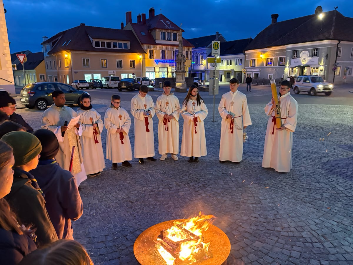 Auch heuer wurde unter der Leitung des CaEx-Teams das traditionelle Osterfeuer für die Auferstehungsmesse organisiert und feierlich entzündet. Das wärmende Feuer bildete einen stimmungsvollen Rahmen für die Feier und unterstrich die besondere Bedeutung dieses Osterbrauchs.
